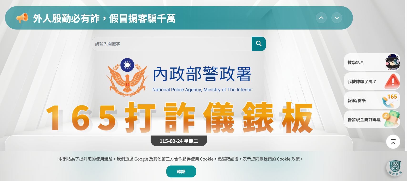 內政部警政署於「165打詐儀錶板」導入AI智能客服小幫手,整合防詐資料庫提供即時互動諮詢,可依民眾描述情境辨識詐騙風險並提供具體處置建議;另具備涉詐網址即時查詢功能,可判斷網站是否具詐騙風險。