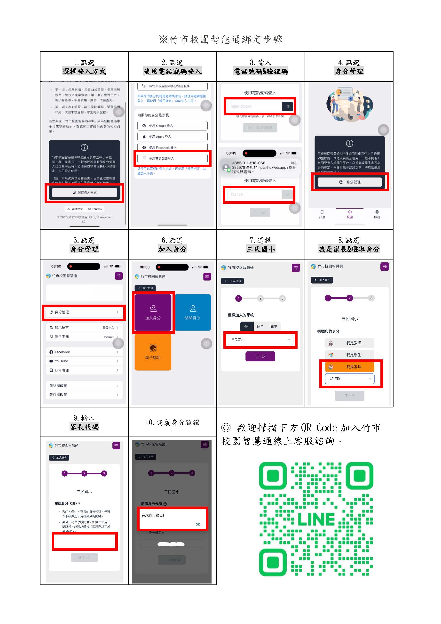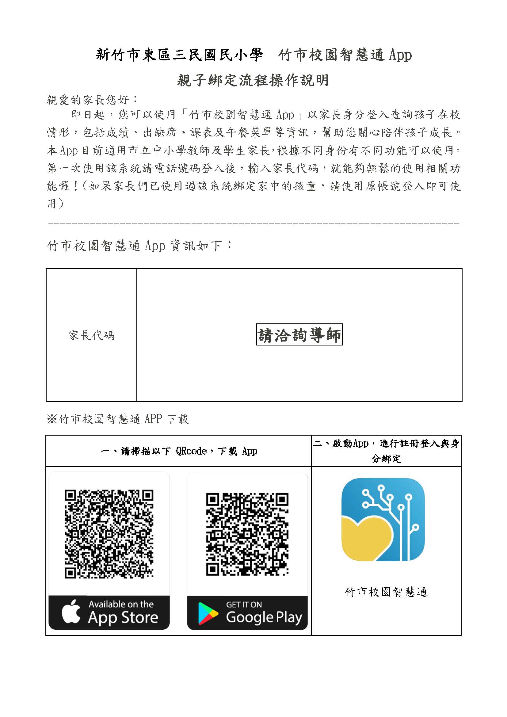 本系統網頁版為親師生平台與竹市校園智慧通APP聯動,使用同一組帳號進行登入。