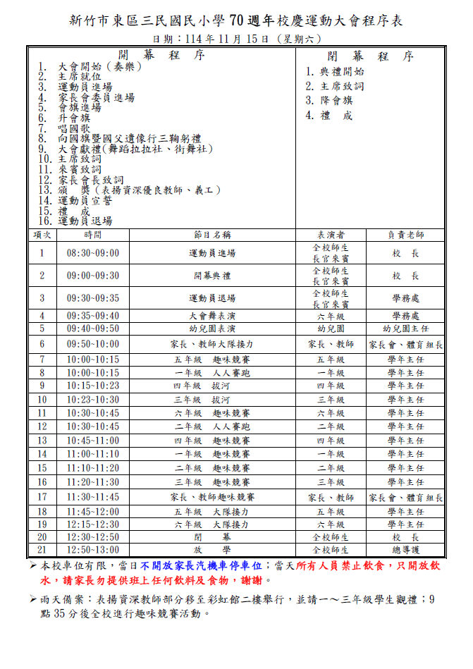 本校謹訂於114年11月15日(六)舉辦70週年校慶運動會,並於11月17日(星期一)補假一天,誠摯的歡迎各位家長們、校友們蒞臨參加。