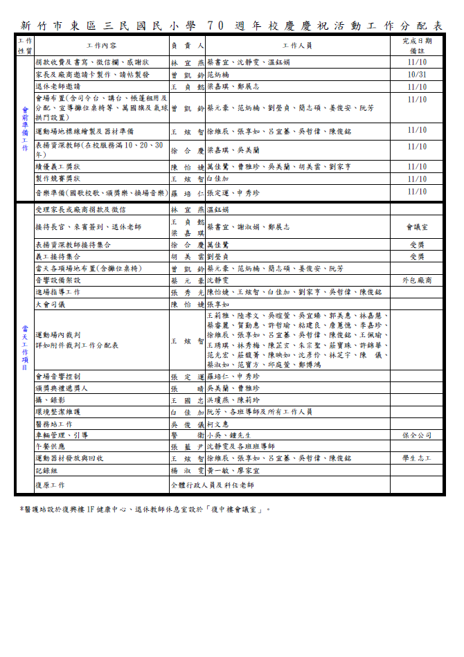 訂於11月4日(星期二)上午8:10召開「校慶工作會議」,請各工作人員準時與會、備忘,謝謝。