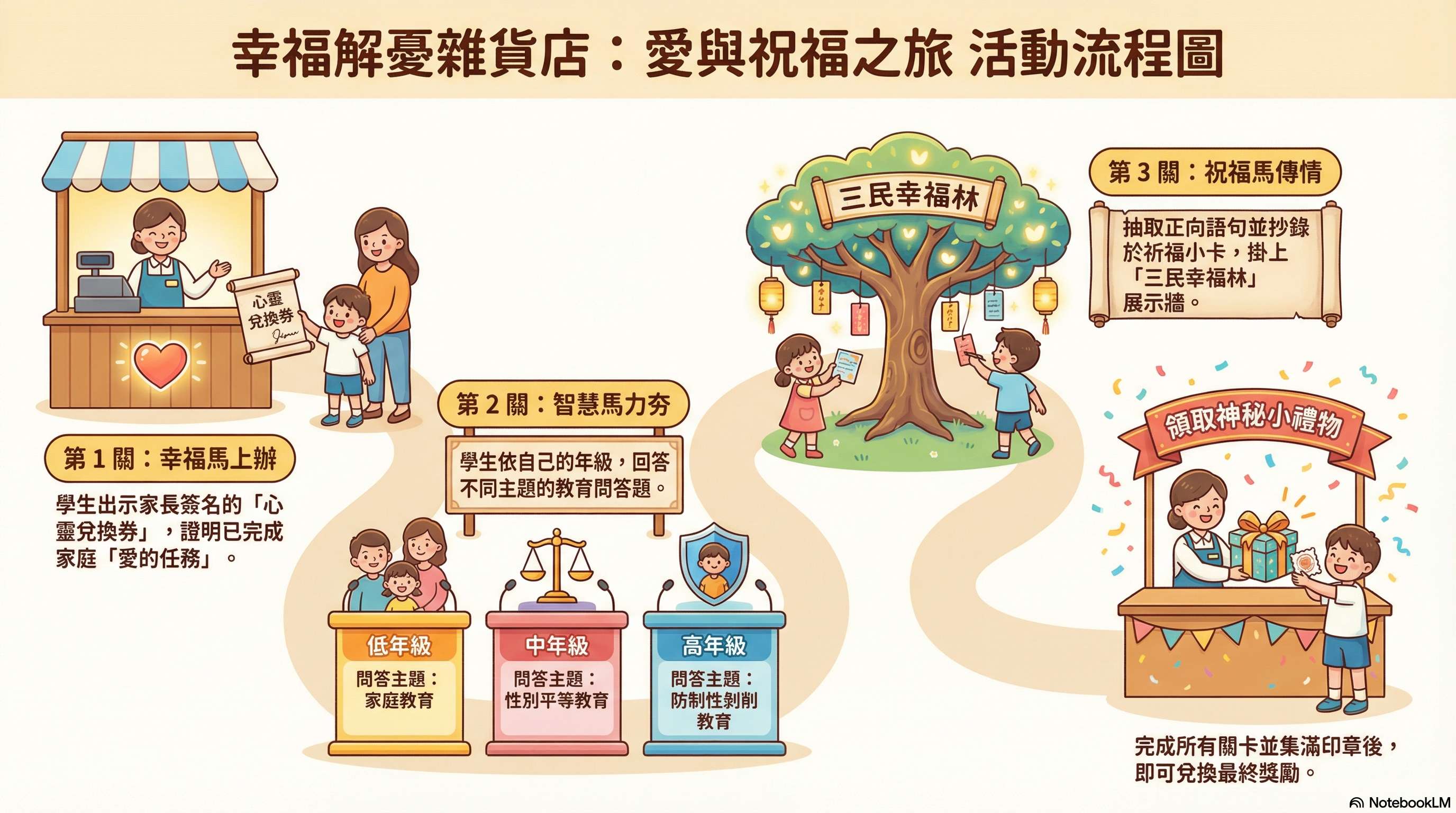 1.【幸福馬上辦】: 持有完成家長任務的「心靈兌換券」嗎?快來佳鷺組長這站,驗收你的任務,過關率 100%!